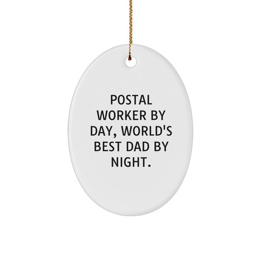 Postal Worker Gifts by Day, World's Best Dad Oval Ornament for Men, Funny Christmas Unique Gifts from Family or Friends