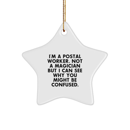 Funny Postal Worker Gifts from Friends - Star Ornament, White, 3.25' Tall, 'I'm A Postal Worker. Not A Magician...'