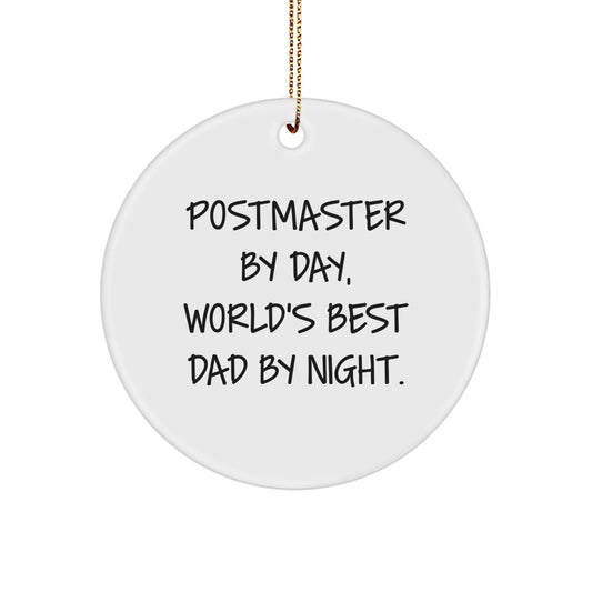 Funny Postmaster Gifts from Men, Postmaster Circle Ornament for Christmas, 'Postmaster By Day, World's Best Dad By Night.'