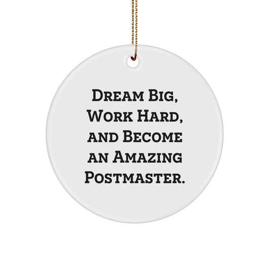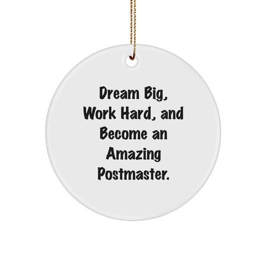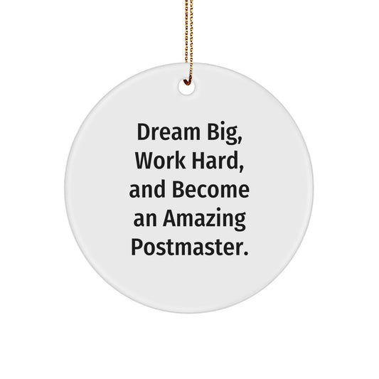Funny Postmaster Gifts from Men for Postmaster Friends and Family - Circle Ornament with Inspirational Quote 'Dream Big, Work Hard, Become An Amazing Postmaster' for Christmas Unique Gifts