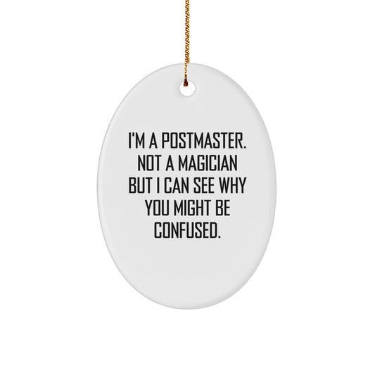 Postmaster Gifts from Men - Funny Oval Ornament, 'I'm A Postmaster' Quote, White, Christmas Unique Gifts for Postmaster