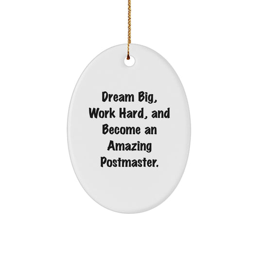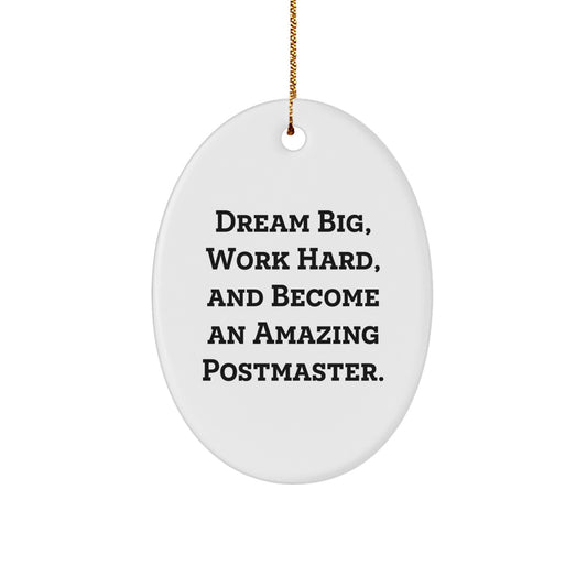 Gifts from Friends for Postmaster - 'Dream Big, Work Hard, And Become An Amazing Postmaster.' Oval Ornament, White, Christmas Unique Gifts