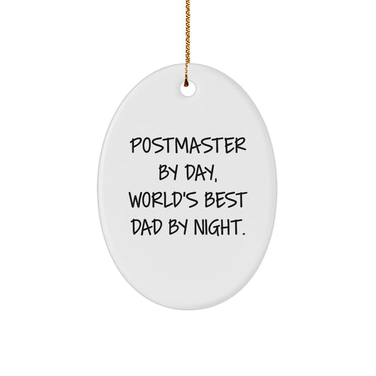 Funny Postmaster Gifts - 'Postmaster By Day, World's Best Dad By Night.' Oval Ornament for Christmas