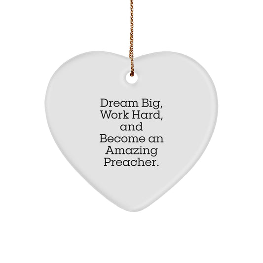 Gifts from Men to Preachers - Inspirational Quote Heart Ornament, 'Dream Big, Work Hard, And Become An Amazing Preacher', Christmas Unique Gifts