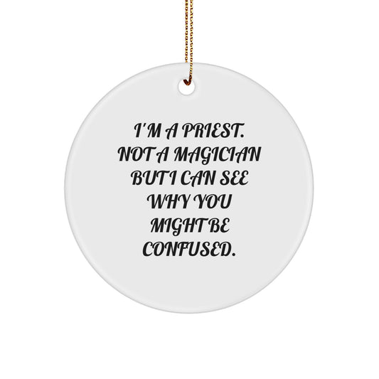Funny Priest Gifts - I'm A Priest. Not A Magician But I Can See Why You Might Be Confused. Circle Ornament for Christmas, Gifts from Men to Priest, Unique Present for Him