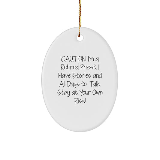 Funny Priest Gifts: 'Caution: I'm A Retired Priest...' Oval Ornament for Christmas