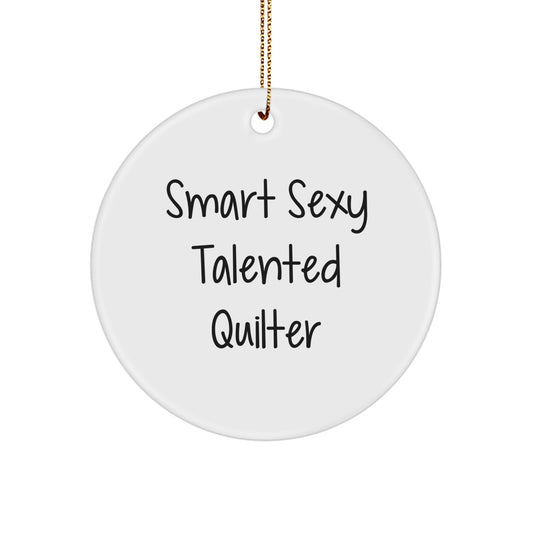 Quilter's Delight, Funny Circle Ornament Gifts from Friends for Christmas, 'Smart Sexy Talented Quilter' Quote, Circle Shaped, Durable MDF Material, 2.75" Tall
