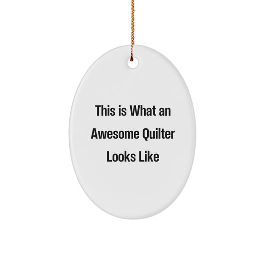 Quilter Gifts from Friends - Oval Ornament with 'This Is What An Awesome Quilter Looks Like' Quote - Christmas Unique Gifts for Quilter
