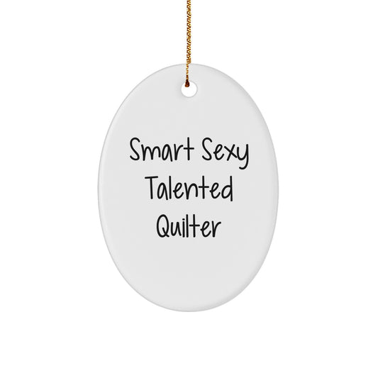 Smart Sexy Talented Quilter's Christmas Unique Gift: Oval Ornament with Funny Quote, Gifts from Friends for Quilters