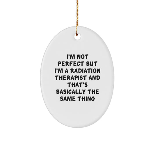 Funny Radiation Therapist Gifts from Friends for Christmas Oval Ornament, 'I'm Not Perfect But I'm A Radiation Therapist And That's Basically The Same Thing' Quote