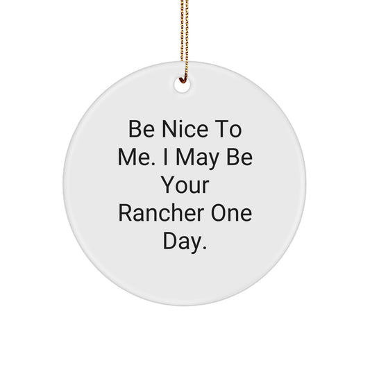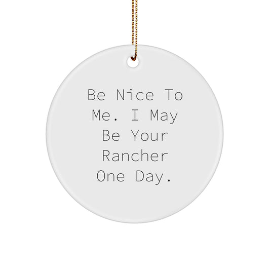 Funny Rancher Gifts from Friends for Men, Unique Circle Ornament for Christmas, Be Nice To Me. I May Be Your Rancher One Day.