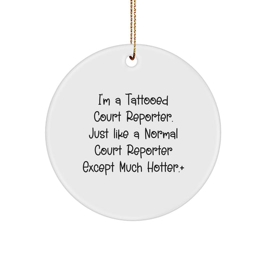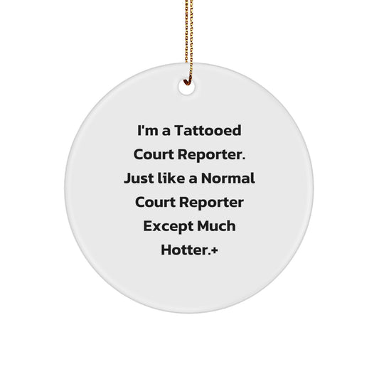 Funny Court Reporter Gifts for Men - 'I'm A Tattooed Court Reporter. Just Like A Normal Court Reporter Except Much Hotter.' Circle Ornament for Christmas Unique Gifts