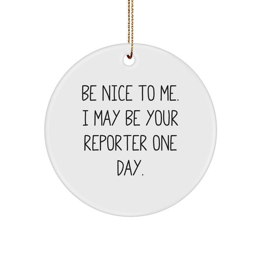 Funny Reporter Gifts for Men from Friends - Be Nice To Me Circle Ornament for Christmas Unique Presents