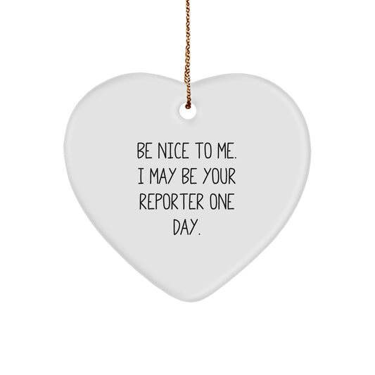 Funny Reporter Heart Ornament Gifts from Friends to Men for Christmas Unique Decorations, 'Be Nice To Me. I May Be Your Reporter One Day.'