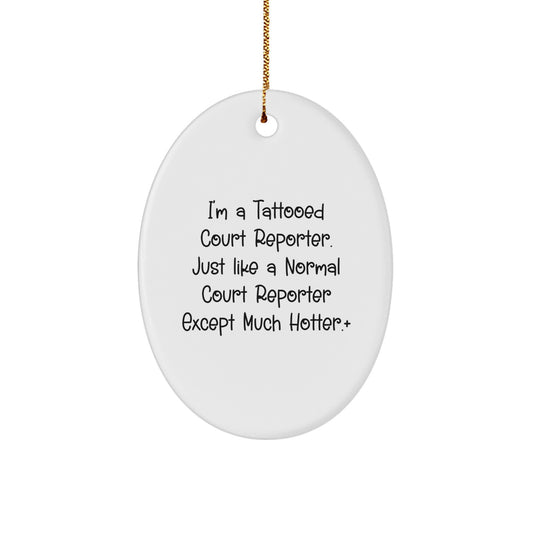 Court Reporter Oval Ornament Gifts from Friends for Court Reporter, A Fun Christmas Unique Gift, 'I'm A Tattooed Court Reporter Just Like A Normal Court Reporter Except Much Hotter' Oval Ornament