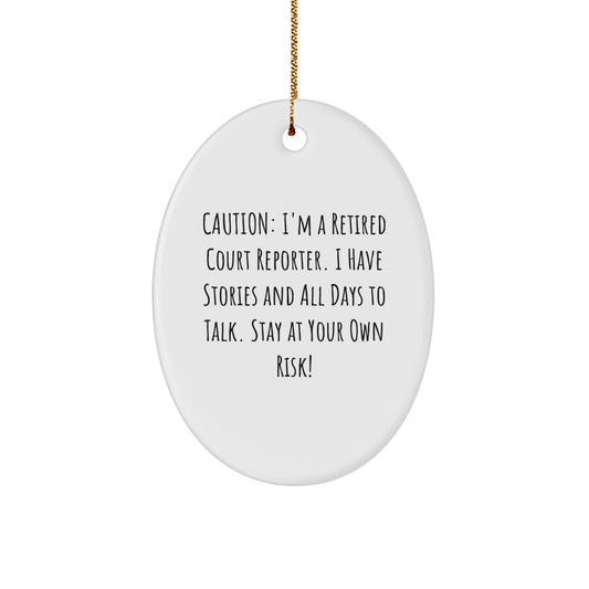 Funny Court Reporter Gifts from Family, Men, Women, Friends, Coworkers - Caution Court Reporter Oval Ornament, Christmas Unique Gifts