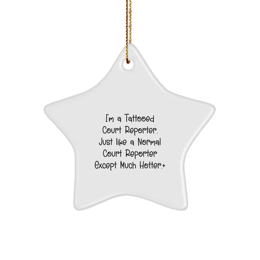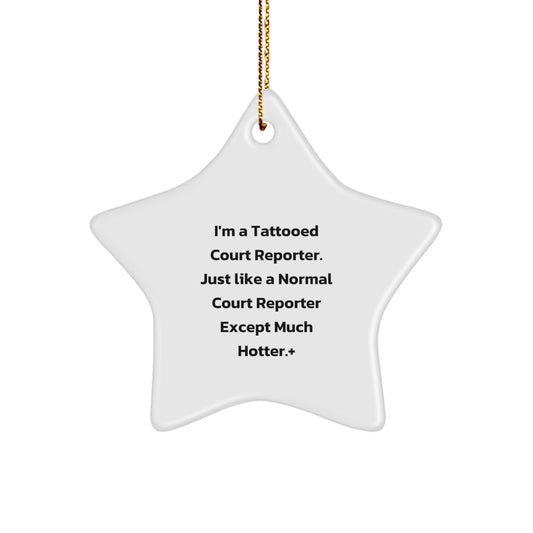 Funny Court Reporter Gifts for Men, Court Reporter Christmas Unique Ornament, Inspirational Star Shaped Decoration by I'm A Tattooed Court Reporter Except Much Hotter.