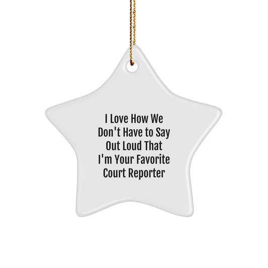 Funny Court Reporter Gifts from Friends: 'I Love How We Don't Have To Say Out Loud That I'm Your Favorite Court Reporter' Star Ornament for Court Reporters at Christmas