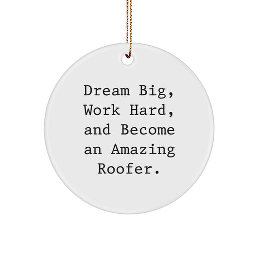 Roofer's Amazing Dream Gifts for Men or Women - 'Dream Big, Work Hard, And Become An Amazing Roofer.' Circle Ornament, White, 2.75'' tall, Festive Gold Cord