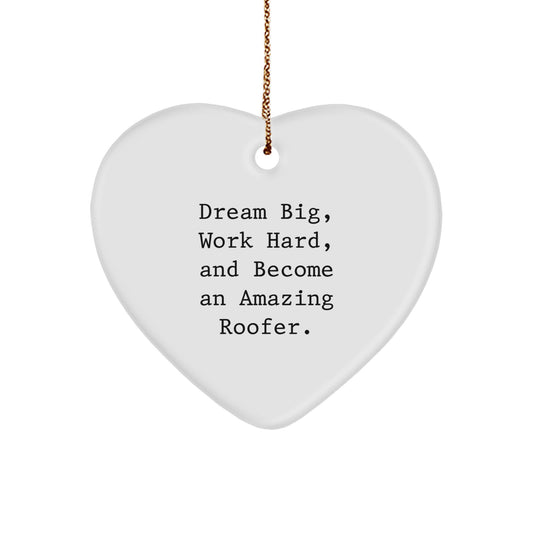 Roofer Humor Heart Ornament, Gifts from Men to Coworkers, Funny Quote: Dream Big, Inspirational Roofer Gifts for Christmas, Heart Shaped MDF Ornament with Gold Cord