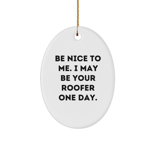 Funny Roofer Oval Ornament Gifts from Friends for Men with Be Nice To Me Quote, Unique Christmas Decorations