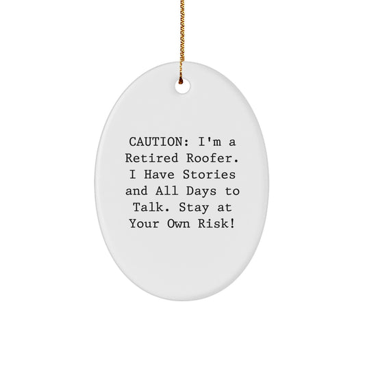 Roofer Gifts from Friends - Oval Ornament with 'Caution: I'm A Retired Roofer. I Have Stories And All Days To Talk. Stay At Your Own Risk!' Quote, Perfect for Christmas