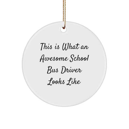Funny School Bus Driver Gifts - This Is What An Awesome School Bus Driver Looks Like, Circle Ornament for Men or Women, Christmas Memorable Presents from Friends or Family