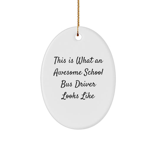 Funny School Bus Driver Gifts from Friends or Family - 'This Is What An Awesome School Bus Driver Looks Like' Oval Ornament for Christmas