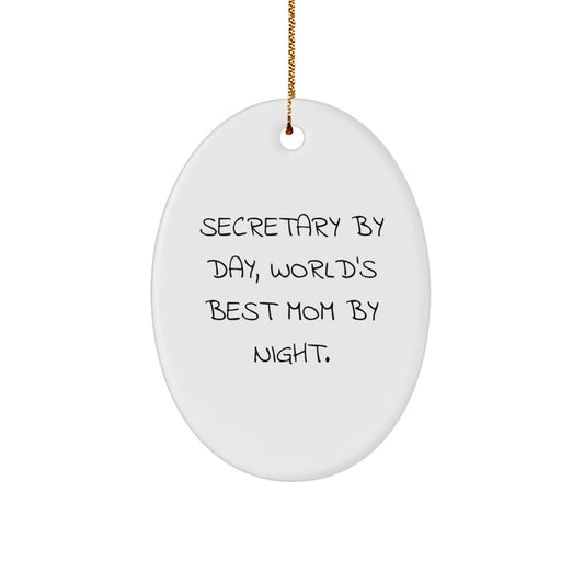 Secretary Gifts by Friends, Family, or Coworkers - Secretary By Day, World's Best Mom By Night. Oval Ornament, White, 3.25" tall, Christmas Unique Gifts