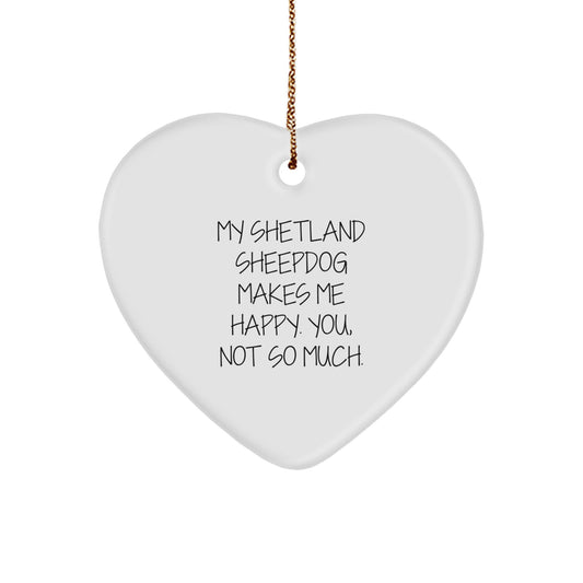 Shetland Sheepdog Heart Ornament, Funny Quote, Gifts for Men, Women, Friends, Family - 'My Shetland Sheepdog Makes Me Happy. You, Not So Much.'