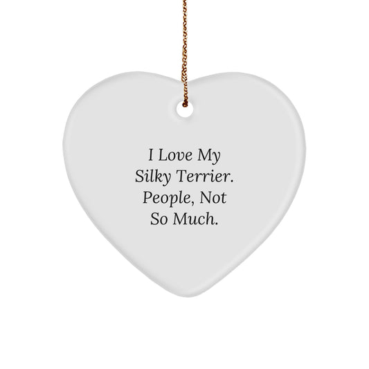 Funny Silky Terrier Dog Gifts from Friends - Heart Ornament with 'I Love My Silky Terrier More Than Most People' Quote for Christmas