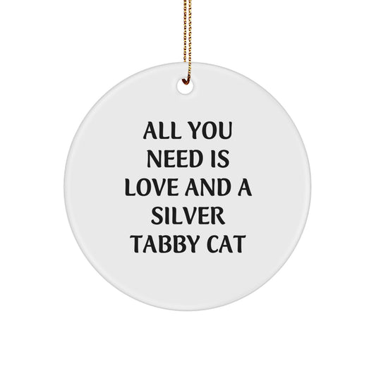 Silver Tabby Cat Lovers' Delight, Circle Ornament Gifts for Friends and Family, 'All You Need Is Love And A Silver Tabby Cat' Christmas Decoration