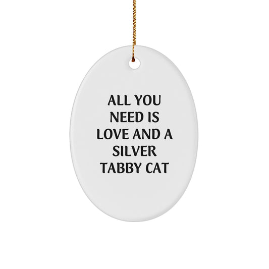 Silver Tabby Cat Gifts from Friends - All You Need Is Love And A Silver Tabby Cat Oval Ornament for Christmas