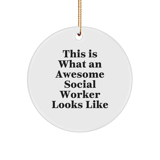 Social Worker Christmas Circle Ornament Gifts from Friends to Social Worker's - 'This Is What An Awesome Social Worker Looks Like' Funny Quote