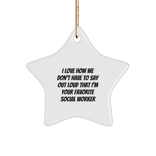 Funny Social Worker Gifts, 'I Love How We Don't Have To Say Out Loud That I'm Your Favorite' Star Ornament, Gifts from Family to Social Worker, for Christmas