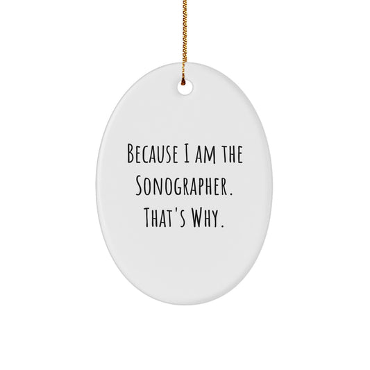 Funny Sonographer Oval Ornament Gift for Him or Her - Inspirational Quote Because I Am The Sonographer. That's Why. - Xmas Unique Gifts from Friends for Family Members - Oval Decorative Item