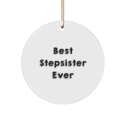 Funny Stepsister Gifts, Best Stepsister Ever Circle Ornament, White Color, Circle Shaped, Gifts for Stepsister from Family, Unique Christmas Unique Gifts