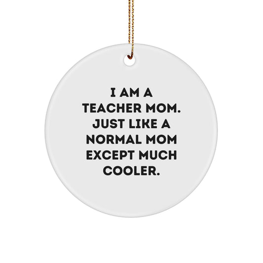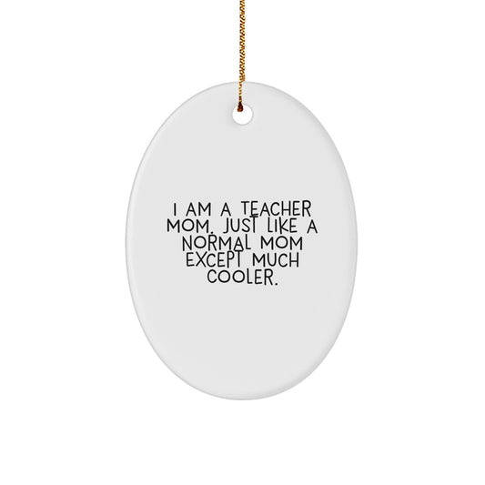 Teacher Mom Gift Ideas, Oval Ornament, Funny Quote 'I Am A Teacher Mom. Just Like A Normal Mom Except Much Cooler', Christmas Unique Gifts from Family to Teacher