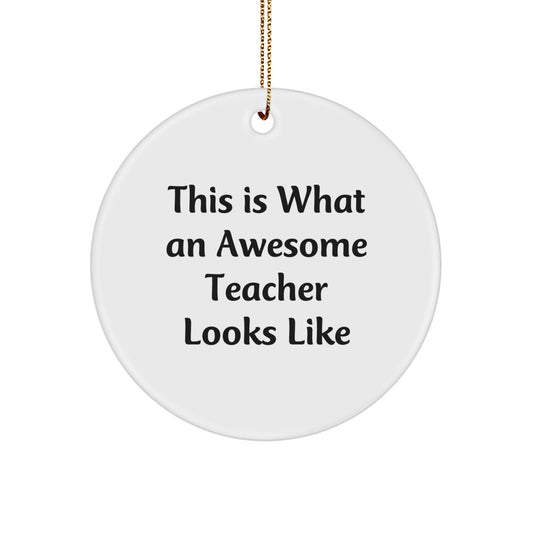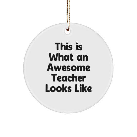 Funny Teacher Gifts from Friends, Circle Ornament with This Is What An Awesome Teacher Looks Like Quote, Christmas Unique Presents for Women, Men, Family, Coworkers