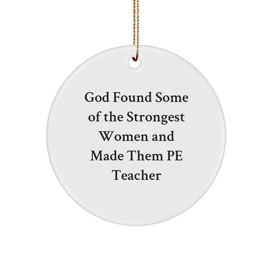 PE Teacher Gifts, Funny Oval Ornament, 'God Found Some Of The Strongest Women And Made Them PE Teacher' Quote, Gifts from Family, for PE Teacher, Oval Shaped, Christmas Unique Gifts
