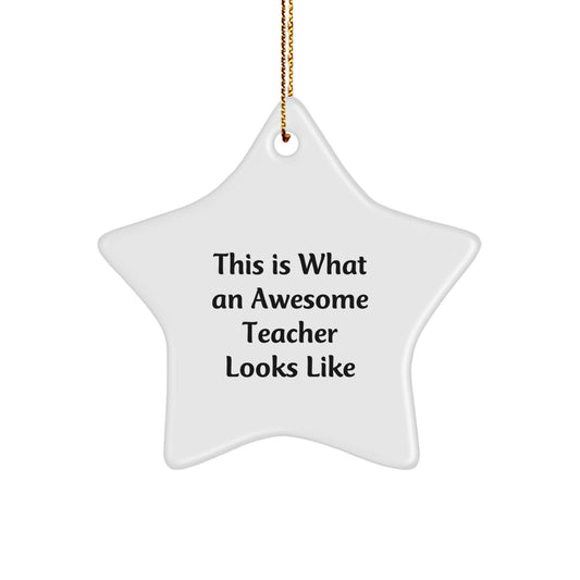 Gifts from Friends - Inspirational Teacher Star Ornament, This Is What An Awesome Teacher Looks Like, White Color, Perfect for Christmas, Teacher Gifts, Teacher Star Ornament