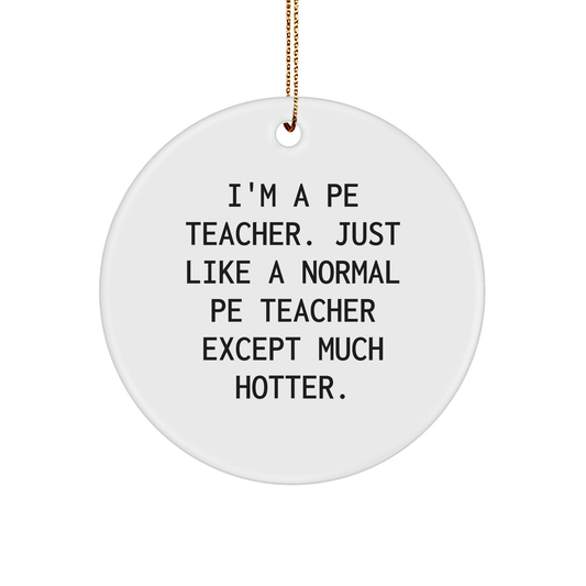 Funny PE Teacher Gifts from Friends for Christmas - 'I'm A PE Teacher' Circle Ornament, Unique and Hotter than Normal