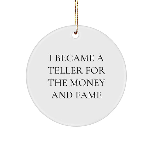 Funny Teller Gifts from Friends for Men, Women, Christmas Unique Ornaments, Circle Shape, 'I Became A Teller For The Money And Fame'