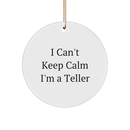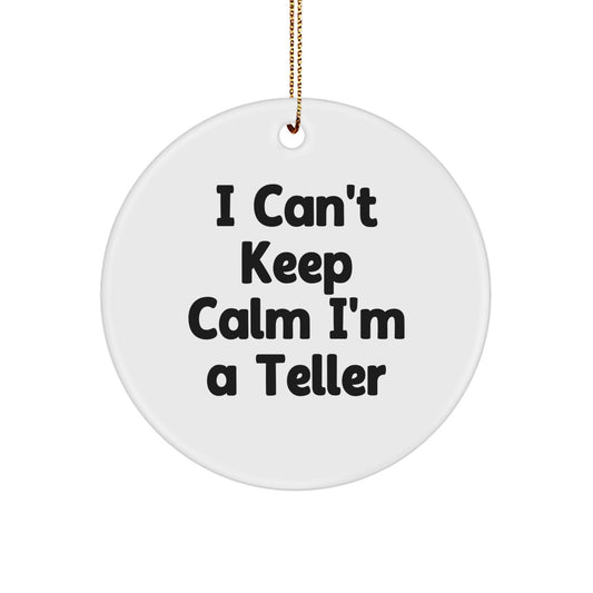 Funny Teller Gifts from Men for Teller Friends and Family Christmas Unique Circle Ornament with I Can't Keep Calm I'm A Teller Quote