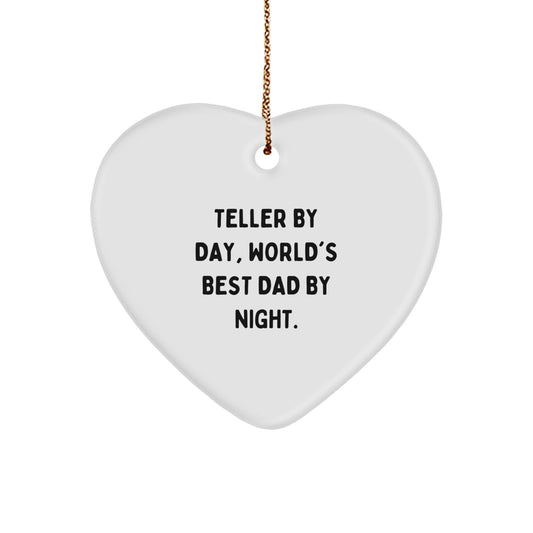 Teller Gifts: Funny Quote Heart Ornament for Teller By Day, World's Best Dad By Night - Gifts from Men for Teller, Unique Christmas Unique Gifts
