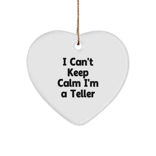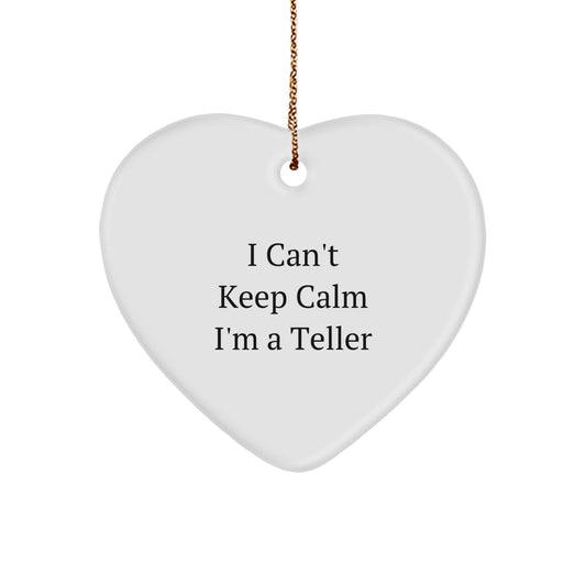 Funny Teller Gifts for Christmas - Heart Ornament with I Can't Keep Calm I'm A Teller Quote, Perfect Unique Gifts from Friends