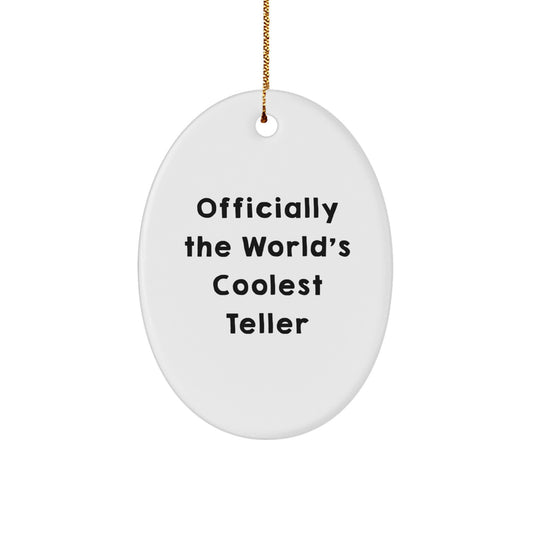 Funny Teller Gifts from Friends, 'Officially The World's Coolest Teller', Oval Ornament for Teller, Christmas Unique Gifts
