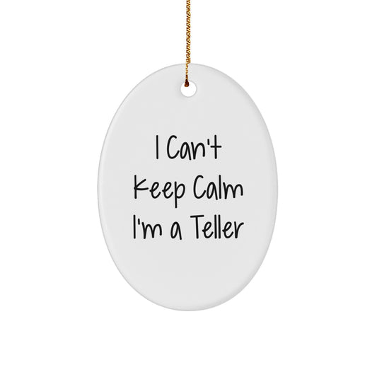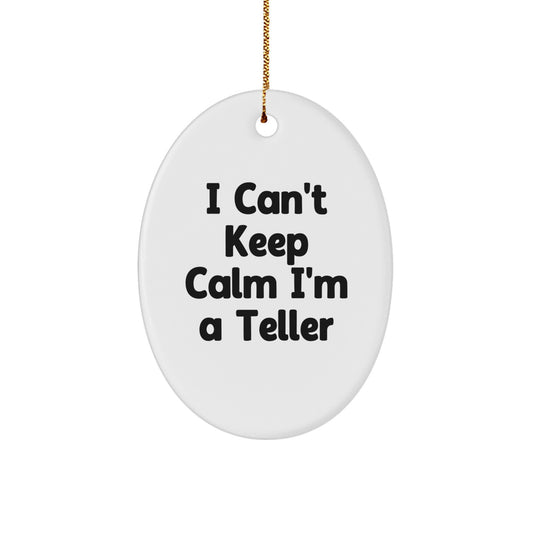 Funny Teller Gifts from Friends, Oval Ornament with I Can't Keep Calm I'm A Teller Quote, Perfect Christmas Unique Gifts for Teller Lovers