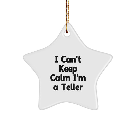 Funny Teller Star Ornament, Gifts from Friends and Family for Christmas Unique Gifts, Personalized I 'Can't Keep Calm I'm A Teller' Decorations