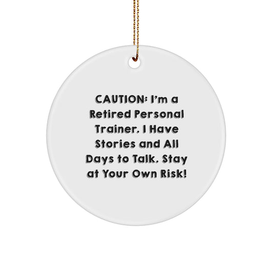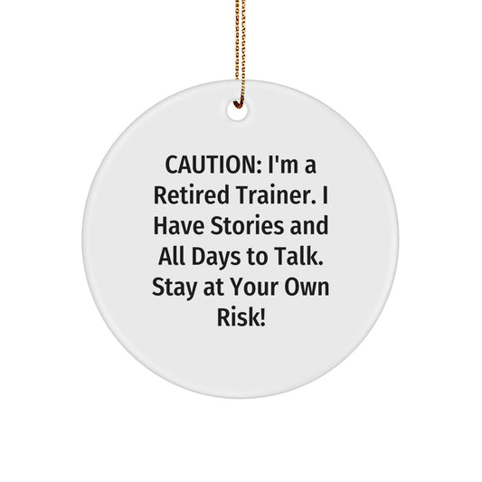 Funny Trainer Gifts from Friends - Caution: I'm A Retired Trainer. I Have Stories And All Days To Talk. Stay At Your Own Risk! - Christmas Circle Ornament for Trainer Enthusiasts